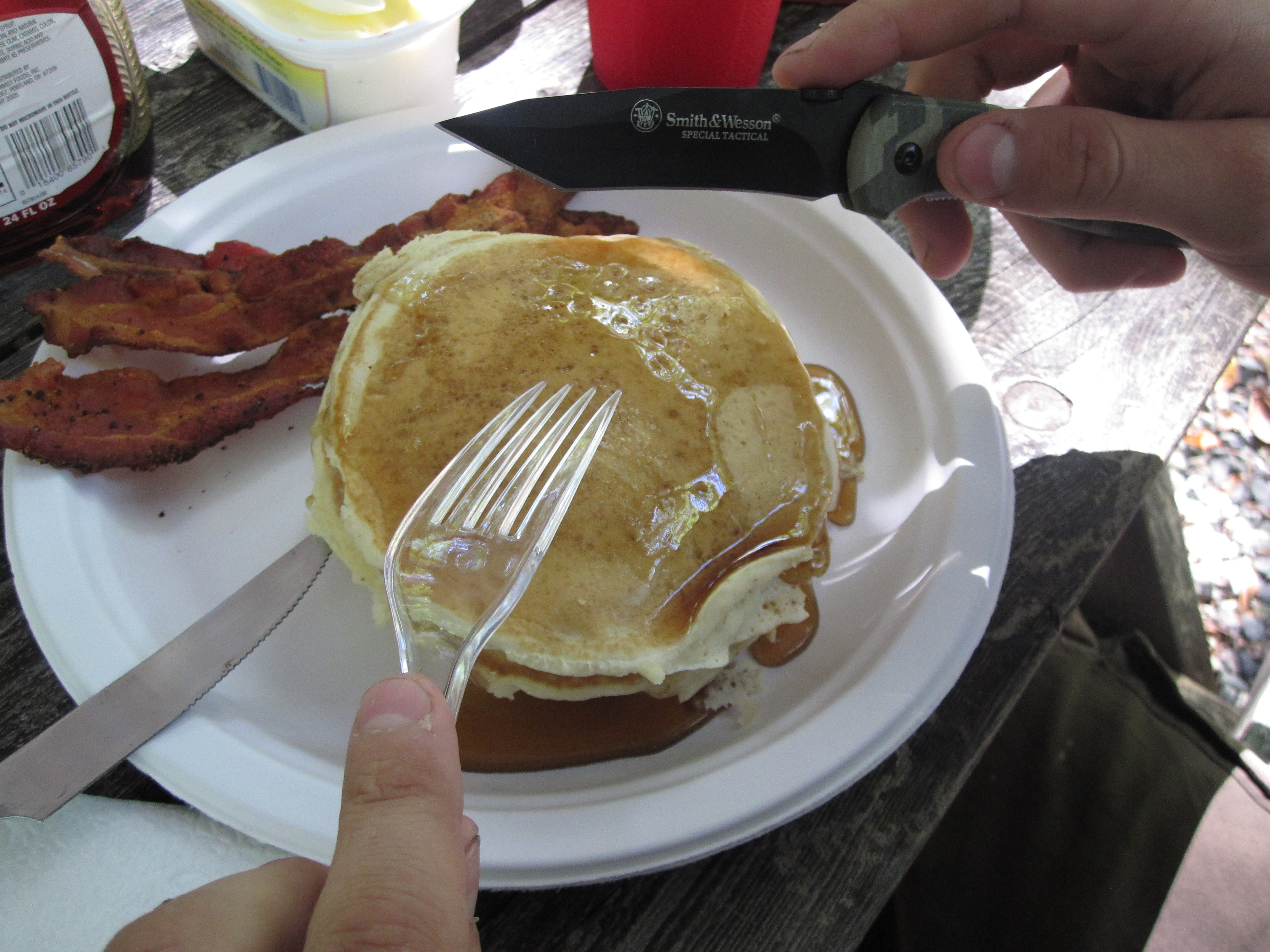 Pancakes and bacon are definitely camping favorites! Make me want to hit the road and head for the woods.