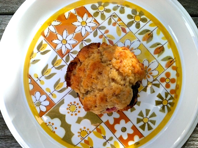 In addition to packing beef jerky for our backwoods vacation on the lake, I went on a mini baking spree. Oatmeal bars made an appearance, only with dried fruit in lieu of chocolate (a better choice for this recipe). Spiced banana bread also found its way with us, but that’s for a future post. I also used this recipe from Gourmet magazine to make whole wheat berry muffins, mostly as a way to use up the miscellaneous berries that were expiring in the refrigerator.