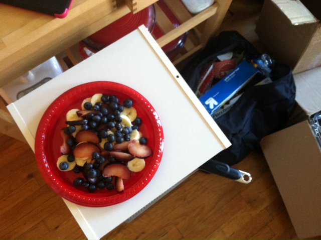 photo (33)Sliced bananas, sliced plums and blueberries with lime juice.